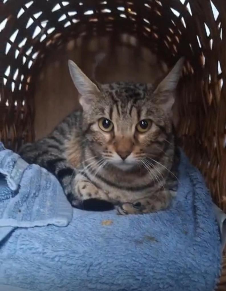 ORZO is an 18-month-old female Bengal. She came from a hoarding situation where she was one of 75 cats kept in outdoor sheds. Orzo is understandably timid given her early months; now in foster care, she is slowly coming out of her shell. Orzo would benefit from a gentle home with outdoor space.